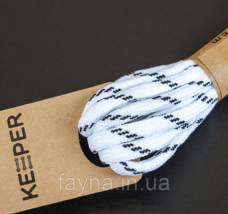 Шнурки Keeper 6 мм круглі трекінгові (не вощені) 120 см Біло-чорні